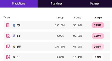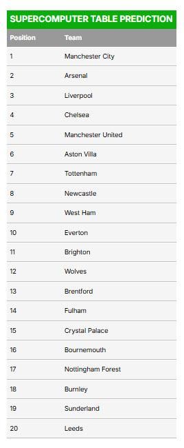 ด้าน เชลซี แชมป์สโมสรโลก 2025 ที่ตั้งเป้าที่จะคว้าแชมป์พรีเมียร์ลีกสมัยแรกนับตั้งแต่ฤดูกาล 2016-17 แต่ซูเปอร์คอมพิวเตอร์คาดการณ์ว่าทีมจากลอนดอน จะคว้าแชมป์ลีกได้เพียง 8.8% ของการทำนายสถานการณ์ และมีแนวโน้มว่าจะจบอันดับที่ 4 อีกครั้ง